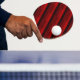 Red and Black Geometric Patchwork Quilt Ping Pong Paddle