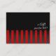 Gift Certificate - Beautiful upscale design featuring a red stripe design pattern on a rich black background. Makes a great gift certificate for beauty salons, spas, cosmetologists, nail salons, dance studios, boutiques, designers, hair and fashion stylists, retail professionals, apparel shops, etc... ⭐This Product is 100% Customizable. Graphics and text can be deleted, moved, resized, changed around, rotated, etc... ⭐99% of my designs in my store are done in layers. This makes it easy for you to resize and move the graphics and text around so that it will fit each product perfectly. ⭐ (Please be sure to resize or move graphics if needed before ordering) You can also "TRANSFER DESIGN" on other Zazzle products and adjust the design to fit most of Zazzle items. (button is down on the right side of the page) Some of the text graphics have ready to fill in the box(es) or you can Click on the "CUSTOMIZE" button to add, move, delete, resize, background color or change any of the font or graphics. The design is made with high resolution vector and/or digital graphics for a professional print. ⭐NOTE: (THIS IS A PRINT. All zazzle product designs are "prints" unless otherwise stated under "About This Product" area) The design will be printed EXACTLY like you see it on the screen and on the product...so please make sure when you do your changes on the resizing of any of the graphics or text that it fits in the areas correctly and that your spelling and wording is how you like it to be in size, color and font. If you have any questions about the "DESIGN ONLY" or need help please contact me at my direct email - siggyscott@comcast.net or visit my store link: http://www.zazzle.com/store/designsbydonnasiggy (Copy and Paste) I'll be happy to help. ⭐ ALL OTHER QUESTIONS (such as the shipping, a refund, the printing is incorrect, or the product itself, etc...) PLEASE CONTACT ZAZZLE OR THE MAKER ⭐DIRECTLY⭐. Thank you for the support and stopping by my store - DesignsbyDonnaSiggy. © Donna Siegrist⭐⭐⭐ ZAZZLE promises 100% satisfaction.
