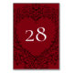 Our beautiful Red & Black Heart Gothic Wedding Table Number are dark, yet lovely with our artistic scroll design. They are designed in a collection of several items so your whole wedding can be coordinated with the same style!