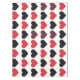 A repeating pattern of red and black hearts arranged in alternating rows on a white background.