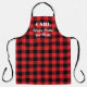 Red and black lumberjack plaid BBQ apron for men. Custom cooking and baking aprons for women and men. Personalized with your name or funny quote. Checkered pattern fashion print design with elegant script typography template. Create your own one of a kind Birthday party gift for mom, bride, dad, father, mother, wife, daughter, sister, brother, bride, husband, friend, grandma, grandpa, kids, boss, co worker, chef, cook, colleague, employee, barista etc. Available in small, medium and big extra large size. Also great for dinner party, art & crafts work, dish washing, bakery shop, DIY home projects, business, restaurant work, coffee shop etc. Customize the looks to any color. Long and short versions available.