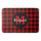 Red and Black Plaid Monogram and Name Bathroom Mat