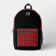 This backpack features several compartments that will keep your things tidy. Personalize the red and black plaid backpack with your monogram. This is a fabulous bag for school, shopping, travel, hiking and more.