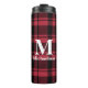Red and Black Plaid with Monogram Name Thermal Tumbler
