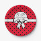 Red and Black Polka Dot White Bow Personalized Paper Plates