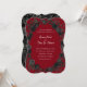 Our black and red floral rose gothic wedding invitations are made to match out Gothic Red & Black Rose Wedding Collection. Dark black and deep red contrast with an abundance of dark floral motifs. Script font paired with serif font, lends to an artistic look that matches well with gothic style.
