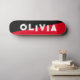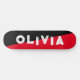 simple red and black skateboard for him, for her or for them is your personalized name in a bold funky and grunge distressed lettering. Get the prefect abstract design for a teen birthday or Christmas present. Just write your own name for a custom skateboard.