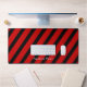 Enhance your desk with an unique, diagonal stripes, red and black desk mat. The options to remove or add text, change the font and size, along with the background color are available.