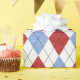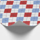 Elegant wrapping paper for weddings, birthdays, and more featuring a red and blue argyle pattern.