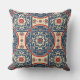Red and Blue Chinoiserie Chinese Tile Pattern Throw Pillow