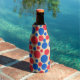 Bottle Cooler Koozie Sleeve Foam Wrap printed with Red And Blue Dots On Tan creamy tan natural wood color background artwork design illustration by TheFabricSeal at Zazzle. #ZazzleMade https://www.zazzle.com/store/thefabricseal