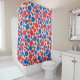 Shower Curtain casual fun bathroom and home furnishing decor accessory printed with Red And Blue Dots On Tan creamy tan natural wood color background artwork design illustration by TheFabricSeal at Zazzle. #ZazzleMade https://www.zazzle.com/store/thefabricseal