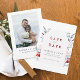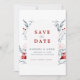This wedding save the date invitation design features a watercolor red and blue flower arch frame. the back has a vertical couple photo. Personalize with your wedding details.