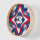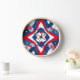 red and blue pattern clock