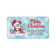 These stylish blue and red Christmas return address labels feature the "Merry Christmas" saying in red casual script font and a cute penguin in a Santa hat sitting with a tiny snowman. The template makes it easy to type your address before ordering.