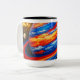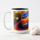 Red and Blue Planet with Rings Two-Tone Coffee Mug