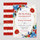 Red and Blue Spring Flowers Frame Birthday Invitation