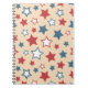 Red and Blue Stars, 4th of July, Beige Background Notebook