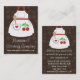 A cute and retro style business card with a red and white apron with a heart on its pocket, a cherry applique design and wooden spoon on a double cherry and daisy tone on tone dark brown background. These personal business cards are perfect for a baker, chef, cook, bakery or catering company. Customize it to say whatever you want on the back and front of the card. Artwork © Chrissy H. Studios, LLC. All Rights Reserved.