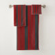 Red and charcoal five stripe pattern bath towel set