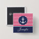 Nautical button with red and navy blue stripes, customizable text and anchor are white.