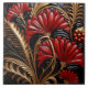 Beautiful red, black and gold shiny ceramic tile with red flowers and gold ferns.