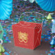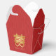 Beautiful Red and Gold Personalized Chinese Double Happiness Wedding Favor Take-Out Box. Add your name. Red Fiber background.