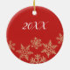 Red and Gold Custom Name and Date with Snowflakes Ceramic Ornament