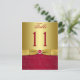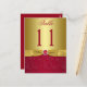 This red and gold FAUX embossed look floral table number post card with a gold PRINTED ribbon and a PRINTED ruby and diamond brooch matches the wedding invitation shown below. You must customize the card for EACH table number that you need, by changing the "11" to each number you need, adding it to your cart, and then repeating the process until you have the correct number of individual cards in your cart. If you have any questions, email niteowlstudio@gmail.com.