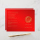 This elegant design, called Red and Gold Flower Indian Wedding, has a red background. On the front there is a gold glitter stylized flower border at the top with one flower in the lower right corner. In the center there is another flower to highlight the couple's name in gold below. The back has a red background with your text in gold. This set has invitations, save the date cards, response cards, thank you cards, table number cards, wine labels, wedding programs, and many more day-of wedding stationery pieces, favors, and gifts to coordinate. All elements are printed on our high quality products, they do not include any real gold, jewels, embossing, or other textile elements. All designs are copyright Noteable Expressions, Inc. All rights reserved.