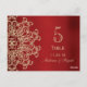 A beautiful red garnet ruby and gold hued wedding table number card with an exotic Indian inspired ornamental sari medallion like pattern with a floral and lotus design. This elegant and beautiful modern Indian style table number card is perfect for any formal or special occasion with an ethnic Indonesian east Asian or Moroccan or Arabian Nights theme. © Chrissy H. Studios, LLC. All Rights Reserved.