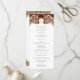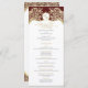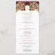 This wedding program card is designed with a minimalist layout in rich burgundy red and elegant gold. The front displays the couple’s names inside a golden frame set against a deep burgundy background, creating a bold and refined appearance. The back page presents the full wedding details in a clean, modern style accented with subtle gold highlights. The dramatic pairing of burgundy and gold gives this program a timeless elegance, making it ideal for formal and luxurious wedding celebrations.