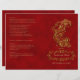 This elegant design, called Red and Gold Peacock Indian Wedding, has a red background. On the front of the invitation there is a gold peacock with a glitter effect. Towards the bottom is a gold filigree scroll design to highlight the couple's name in gold. The back has a red background with your text in gold. This set has invitations, save the date cards, response cards, thank you cards, table number cards, wine labels, wedding programs, and many more day-of wedding stationery pieces, favors, and gifts to coordinate. All elements are printed on our high quality products, they do not include any real gold, jewels, embossing, or other textile elements. All designs are copyright Noteable Expressions, Inc. All rights reserved.