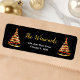 This elegant and chic return address label features a red and gold ribbon Christmas tree with a star topper. The text combines handwritten script and modern sans serif fonts for a classy and sophisticated look. The falling snow, snowflakes and sparkles give a festive and magical touch. This is perfect for Christmas and the holiday season.