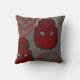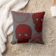 Red and gray skulls above light gray circles on a darker gray textured background.
