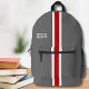 Red and Gray Stripe College Colors Monogram Printed Backpack