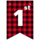 Red and Green Buffalo Plaid 1st Birthday Party Bunting Flags