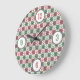 Red and Green Checkered Dog Paw Print Pattern Large Clock
