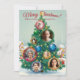 Red and Green Christmas Card with Tree ornaments