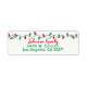 Old fashion outdoor red & green Christmas lights stringed across the address label. Below is the Name line in red with script font. Below is the address & city/state/zip lines in sans serif font in green. Super cute Christmas return address label with minimal design