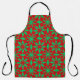 Great color and even though I ordered the kid size, it covers well enough to use during the holidays. I am not a big woman and prefer a shorter apron. I stand 5"6" and the length of the garment goes to mid-thigh. The tie straps fit well at my waist and even though there is no neck strap adjustment, the opening is plenty big enough. I am happy with the size and fit. I am sharing my apron with my 10 year old grandson, too! The color is vibrant and looks good, as shown on the website. The stitching looks strong and reinforced. Photographed is front side and back side of the apron, reinforced straps and coloring. My phone camera may not be the best at showing the details.