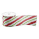 Red and Green Diagonal Holiday Stripe Satin Ribbon