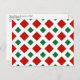 Red and Green Diamonds on White Christmas Postcard
