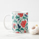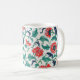 This is a colorful watercolor vintage floral pattern with red flowers and green leaves on a white background.