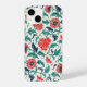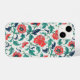 This is a colorful watercolor vintage floral pattern with red flowers and green leaves on a white background.