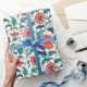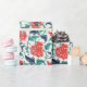This is a colorful watercolor vintage floral pattern with red flowers and green leaves on a white background.