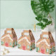 This cute gingerbread house gable box will make packaging up your holiday treats even more fun! The favor box is all decked out for Christmas with lots of candy and white icing details! The back side has a place to personalize with your name. Colors include red, green, brown and white.