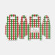 Red and green gingham pattern. Red and green checkered gingham. A white shape in the middle with the text "Merry Christmas".