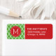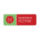 Red and Green Holiday Quatrefoil Monogram Label