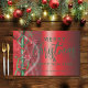 Celebrate the joy of the season with our vibrant and festive Christmas paper placemat! The design features snowflakes in shades of red and green on a red metallic background. The modern script font beautifully articulates the heartfelt wishes of “Merry Christmas & Happy New Year”, adding a touch of elegance to your holiday decor. What sets this placemat apart is its customizable feature. You can personalize it with your family’s name, making it a unique and cherished addition to your Christmas table. This placemat not only enhances the aesthetic appeal of your table setting but also creates a memorable dining experience for your loved ones.